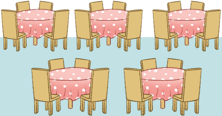 Trong buổi tiệc, người ta xếp ghế ngồi cạnh 5 chiếc bàn, mỗi bàn 4 ghế. Hỏi có tất cả bao nhiêu chỗ ngồi?
