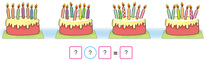 Số cây nến trên mỗi chiếc bánh × Số chiếc bánh = Số cây nến