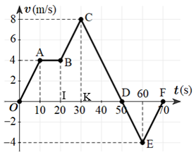 Cho đồ thị vận tốc – thời gian như hình vẽ. Độ dịch chuyển của vật trong 30s đầu
