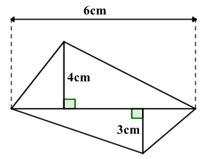 Một hình lăng trụ tứ giác có kích thước đáy như hình bên dưới, biết chiều cao của lăng trụ là \(9cm.\) Thể tích của hình lăng trụ là: