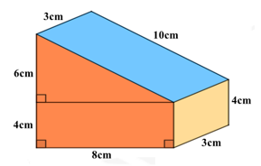 Bạn An đã làm một chiếc hộp hình lăng trụ đứng với kích thước như hình vẽ bên dưới. Bạn ấy định sơn tất cả các mặt của chiếc hộp. Hãy tính diện tích cần sơn.