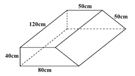 Một cái bục hình lăng trụ đứng có kích thước như hình vẽ bên dưới. Người ta muốn sơn các mặt của cái bục (trừ mặt tiếp xúc với đất). Diện tích cần phải sơn là bao nhiêu?