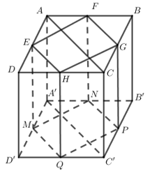 Cho hình lập phương \(ABCD.A'B'C'D'\). Gọi \(E,F,G,H,M,N,P,Q\) lần lượt là trung điểm của