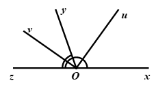 Cho góc vuông \(uOv\) và tia \(Oy\) đi qua một điểm trong của góc đó. Vẽ tia \(Ox\) sao cho \(Ou\) là tia phân giác của góc \(xOy\). Vẽ tia \(Oz\) sao cho \(Ov\) là tia phân giác của góc \(yOz\). Chứng minh rằng hai góc \(xOy\) và \(yOz\) là hai góc kề bù.