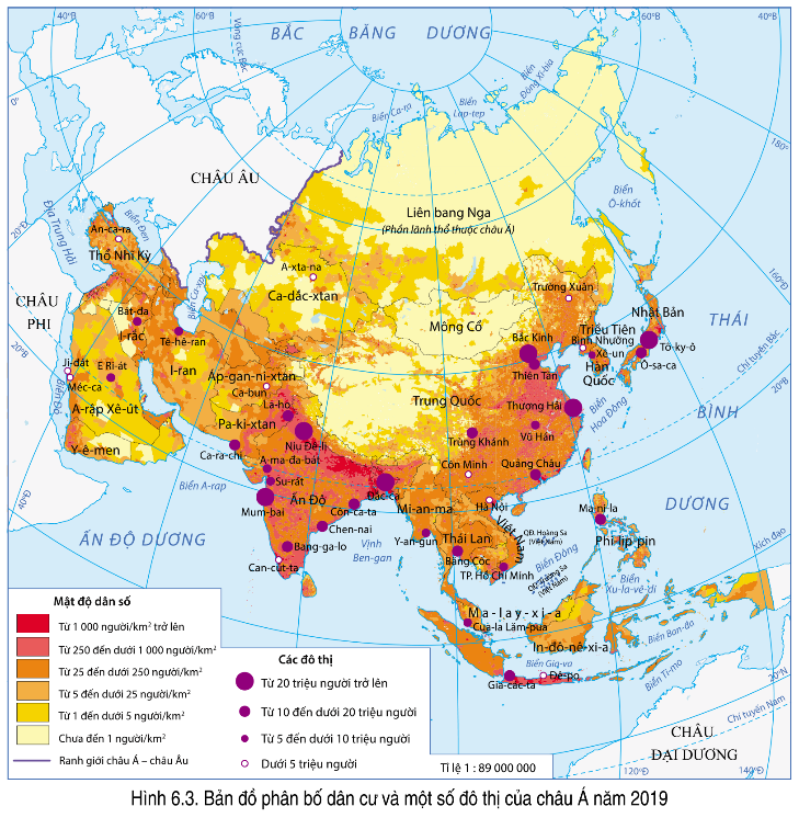 Dựa vào hình 6.3 trong SGK, hãy kể tên:a. Một số đô thị có mật độ dân số trên 1000