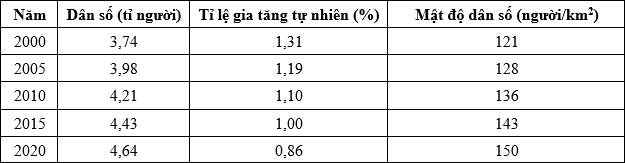 b. Nhận xét về tình hình phát triển dân cư châu Á giai đoạn 2000 – 2020.