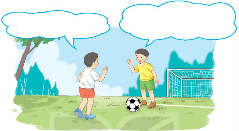 Trong một lần đi chơi bóng đá, em gặp một bạn nhỏ cũng đang chơi ở sân bóng. Em hãy tưởng tượng ra đoạn giới thiệu giữa em và bạn nhé.