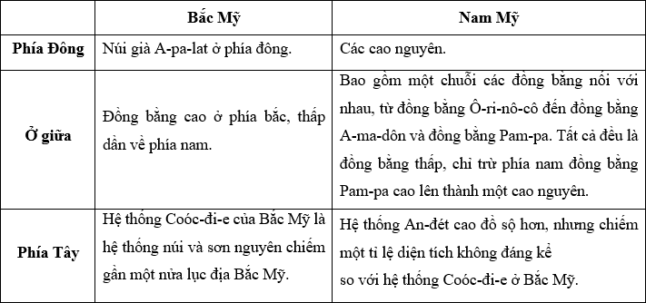 So sánh điểm giống và khác nhau của cấu trúc địa hình Bắc Mỹ và Nam Mỹ?