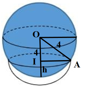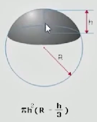 Công thức xác định thể tích của khối chỏm cầu có bán kính R, chiều cao h có thể tích \(V = \pi {h^2}\left( {R - \dfrac{h}{3}} \right)\).