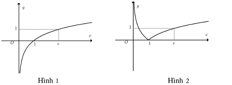 Cho hàm số \(y = \ln x\) có đồ thị như Hình 1. Đồ thị Hình 2 là của hàm số nào dưới