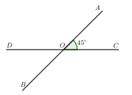 Hai đường thẳng \(AB\) và \(CD\) cắt nhau tại \(O\) tạo thành \(\angle AOC = 45^\circ \)