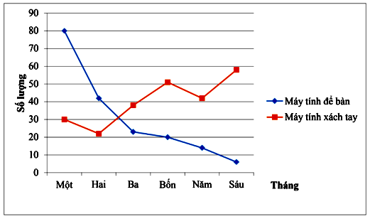 Chú ý: Trục ngang là các tháng; trục dọc là số lượng máy bán ra.