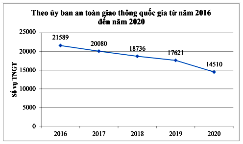 Cho biểu đồ đoạn thẳng biểu diễn số vụ tai nạn giao thông cả nước tính từ năm \(2016\)