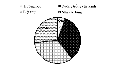 Biểu đồ hình quạt sau đây biểu diễn tỉ số phần trăm đất sử dụng cho khu đô thị mới