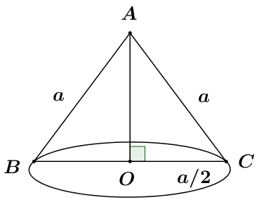 Thiết diện đi qua trục của khối nón là một tam giác đều ABC cạnh bằng a. Thể tích của