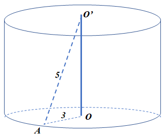 Cho hình trụ có các đáy là đường tròn tâm \(O\) và \(O'\). Đường kính đáy bằng \(6\). Trên đường tròn đáy tâm \(O\) lấy điểm \(A\) sao cho \(AO' = 5\). Diện tích xung quanh hình trụ là?