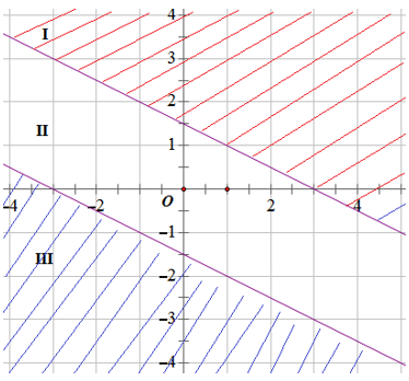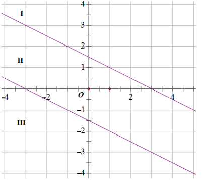 Hai đường thẳng d: x + 2y + 3 = 0 và d’: x + 2y – 3 = 0 chia mặt phẳng tọa độ thành 3 miền I,