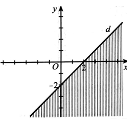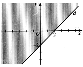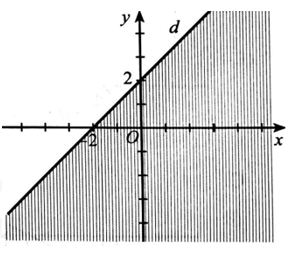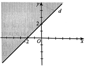 Miền nghiệm của bất phương trình \( - x + y < 2\) được xác định bởi miền nào (nửa mặt phẳng không bị gạch và không kể \(d\)) sau đây?