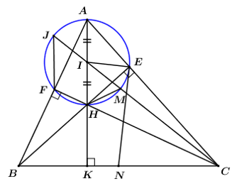 Lại có \(I\) là trung điểm của \(AH\) nên \(I\) là tâm đường tròn đường kính \(AH\)