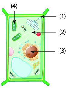 Quan sát hình sau và trả lời câu hỏi: Ở tế bào thực vật, bào quan chứa sắc tố có khả năng hấp thụ năng lượng ánh sáng để quang hợp là gì?