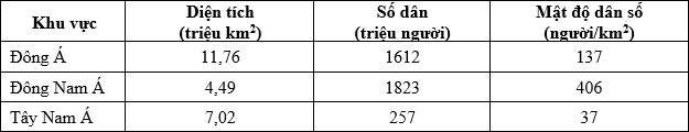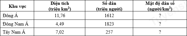 Cho bảng số liệu: Diện tích và dân số một số khu vực châu Á năm 2015 a) Tính mật độ dân