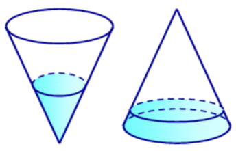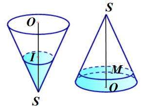 Một cái phễu có dạng hình nón, chiều cao của phễu là 20cm. Người ta đổ một lượng nước