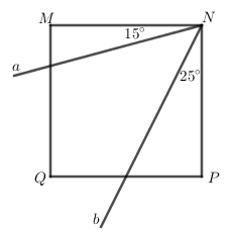 Cho hình vẽ bên có \(MNPQ\) hình vuông và \(\angle aNM = 15^\circ \); \(\angle bNP = 25^\circ \). Tính