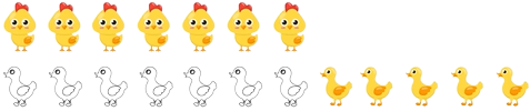 Trên sân có \(7\) con gà, số vịt nhiều hơn số gà là \(5\) con. Hỏi trên sân có bao nhiêu con vịt?