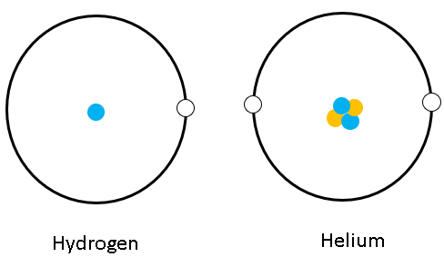 Cho mô hình cấu tạo của hydrogen và helium