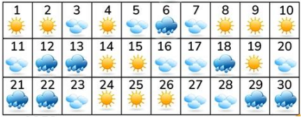 Số ngày nắng, số ngày mưa và số ngày nhiều mây lần lượt là: