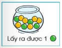 Quan sát trong bình có hình tròn xanh không, từ đó nêu khả năng lấy được 1 hình tròn xanh.