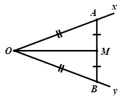 Cho góc nhọn \(xOy\). Trên tia \(Ox\) và \(Oy\) lần lượt lấy hai điểm \(A\) và \(B\) sao cho \(OA = OB\). Gọi \(M\) là trung điểm của đoạn thẳng \(AB\).