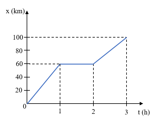 Một ô tô tải xuất phát từ thành phố H chuyển động thẳng đều về phía thành phố P với tốc độ 60 km/h. Khi đến thành phố D cách H 60 km thì xe dừng lại 1 giờ. Sau đó xe tiếp tục chuyển động đều về phía P với tốc độ 40 km/h. Coi đường H – P thẳng và dài 100 km. Vẽ đồ thị tọa độ - thời gian của ô tô.