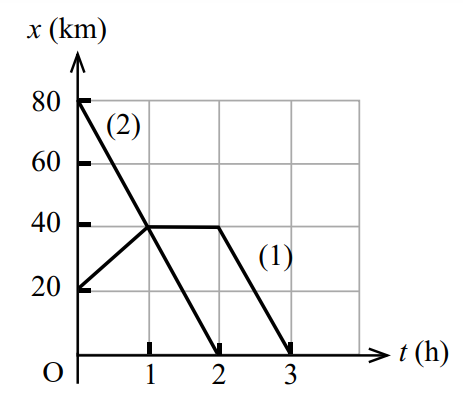 Hình vẽ dưới đây mô tả đồ thị tọa độ - thời gian của hai xe, hãy nêu đặc điểm chuyển động của mỗi xe.
