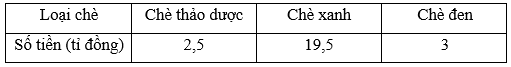 Bảng nào sau đây là bảng số liệu thống kê số tiền công ty chè Phú Minh thu được ở mỗi loại chè 2020?