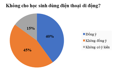 Một cuộc tham dò ý kiến trên mạng Internet về việc không cho học sinh cấp THCS dùng điện thoại di động cho kết quả trong biểu đồ dưới đây: