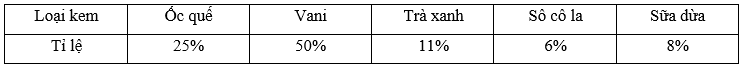 b) Hãy lập bảng thống kê tỉ lệ các loại kem bán được trong một ngày của cửa hàng.