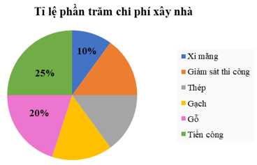 Chi phí xây dựng nhà được biểu diễn qua biểu đồ hình quạt tròn sau:
