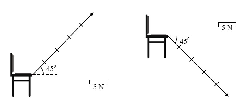Biểu diễn lực trong trường hợp sau: kéo chiếc ghế với lực 25 N theo phương nằm nghiêng so với mặt đất một góc \({45^0}\).