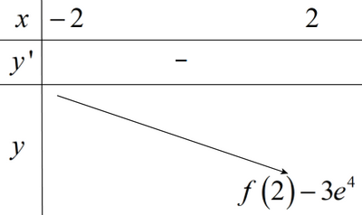 Bất phương trình \(f\left( x \right) < 3{e^{x + 2}} + m\) có nghiệm \(x \in \left( { - 2;2} \right)\) khi và chỉ khi: