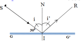 Nếu tia sáng tới hợp với gương phẳng một góc \({30^0}\) thì tia phản xạ hợp với tia tới