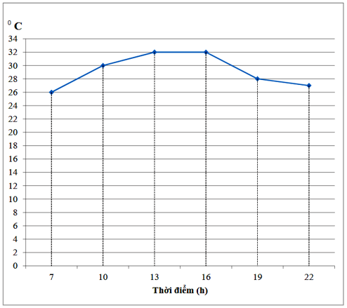 Biểu đồ đoạn thẳng trên cho biết nhiệt độ ở Hà Nội trong ngày 07/05/2021 tại một số