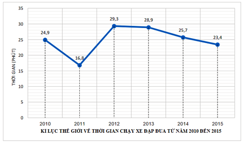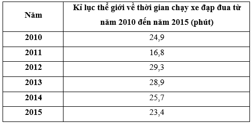Bảng biểu diễn sau cho biế kỉ lục thế giới về thời gian chạy xe đạp đua trong các năm từ 2010 đến năm 2015.