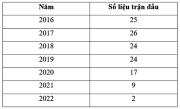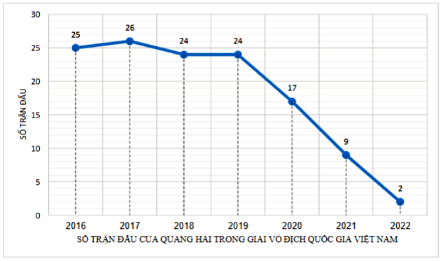 Bảng biểu diễn sau cho biết số trận đấu của cầu thủ Quang Hải trong giải Vô địch Quốc gia Việt Nam.