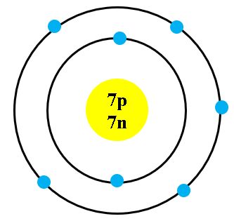 Cho mô hình cấu tạo nguyên tử của nguyên tố nitrogen