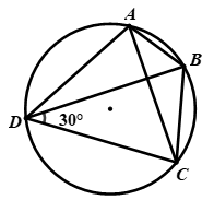 Cho tứ giác ABCD nội tiếp một đường tròn, \(\angle CDB = {30^0}\). Số đo của \(\angle CAB\)