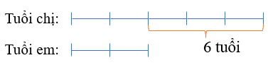 Vẽ sơ đồ của bài toán, từ đó tính được tuổi em, sau đó tính được 5 lần tuổi em bằng 2 lần tuổi chị cách đây mấy năm.
