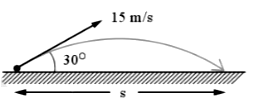 Từ mặt đất, một quả bóng được đá đi với vận tốc 15m/s hợp với phương ngang góc \({30^0}\) (hình vẽ). Nó chạm đất cách điểm được đá bao xa?