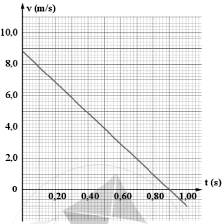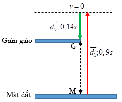 Một người thợ xây ở mặt đất tung một viên gạch lên cho người thợ xây đang ở trên giàn giáo, người này sẽ bắt được nó. Đồ thị ở hình vẽ thể hiện vận tốc của viên gạch từ khi nó rời khỏi tay người thợ xây ở mặt đất đến khi người thợ xây ở trên giàn giáo bắt được nó. Người thợ xây ở trên giàn giáo bắt được viên gạch sau 1,04 giây từ khi người thợ xây ở mặt đất tung nó lên. Tính khoảng cách giữa hai người thợ xây