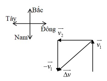 Một ô tô đang đi với vận tốc 50,0 km/h theo hướng Bắc thì quay đầu đi về hướng Tây với